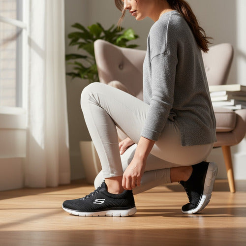 Tenis Skechers Mujer Summits Memory Foam 12980bkw Negro